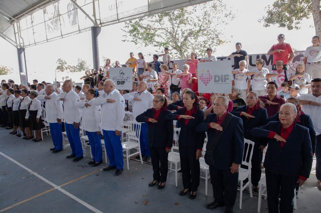 En este concurso participaron los representantes de Tulum, el club de adultos mayores “Luz y Esperanza”, quienes también dieron ejemplo de disciplina y espíritu cívico, en reconocimiento a la bandera.