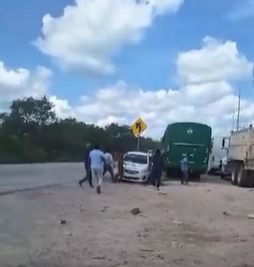 Habitantes de la colonia irregular, Tren Maya de Tulum, se manifiestan y bloquean la carretera federal 307 en el tramo entre esta ciudad y el Aeropuerto Internacional Felipe Carrillo Puerto.
