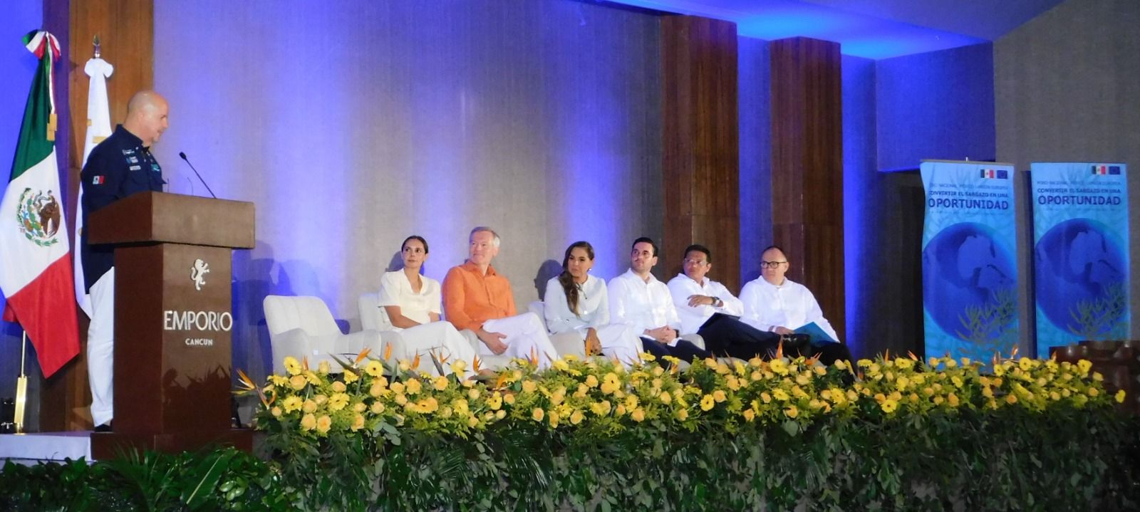 El Foro México-Unión Europea, coorganizado por la Unión Europea, la Secretaría de Ecología y Medio Ambiente del Estado de Quintana Roo, CAF-banco de desarrollo de América Latina y el Caribe y The Seas We Love, tuvo como objetivo principal convertir el sargazo, que se ha convertido en un desafío medioambiental, social y económico, en una oportunidad a través de innovadores métodos de industrialización.