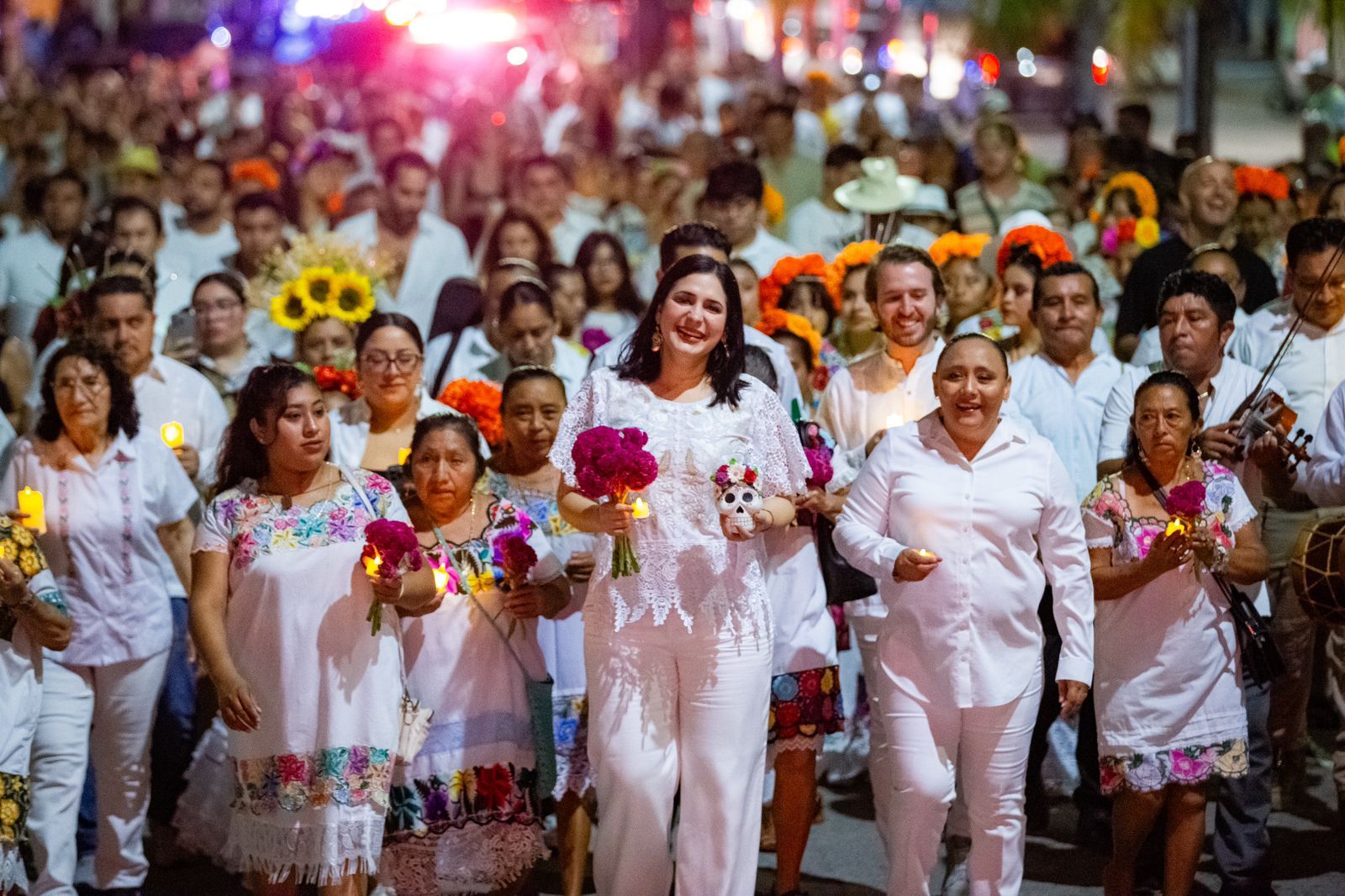 Playa del Carmen vivió una noche llena de misticismo, con mujeres y hombres portando atuendos tradicionales y elementos para honrar a los fieles difuntos, durante el “U xíimbal pixano’ob” (Desfile de los Pixanes), que encabezó la presidenta municipal, Estefanía Mercado.