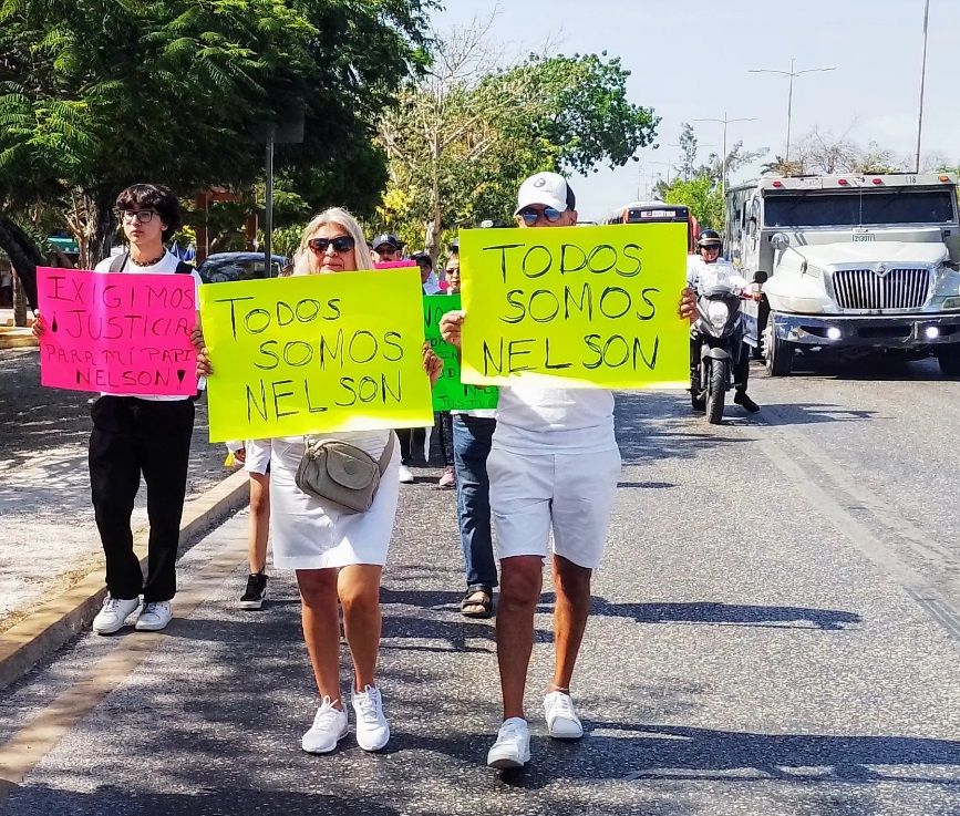 Los quejosos, junto con familiares del occiso, marcharon rumbo al palacio municipal, en donde con pancartas se manifestaron de manera pacífica.