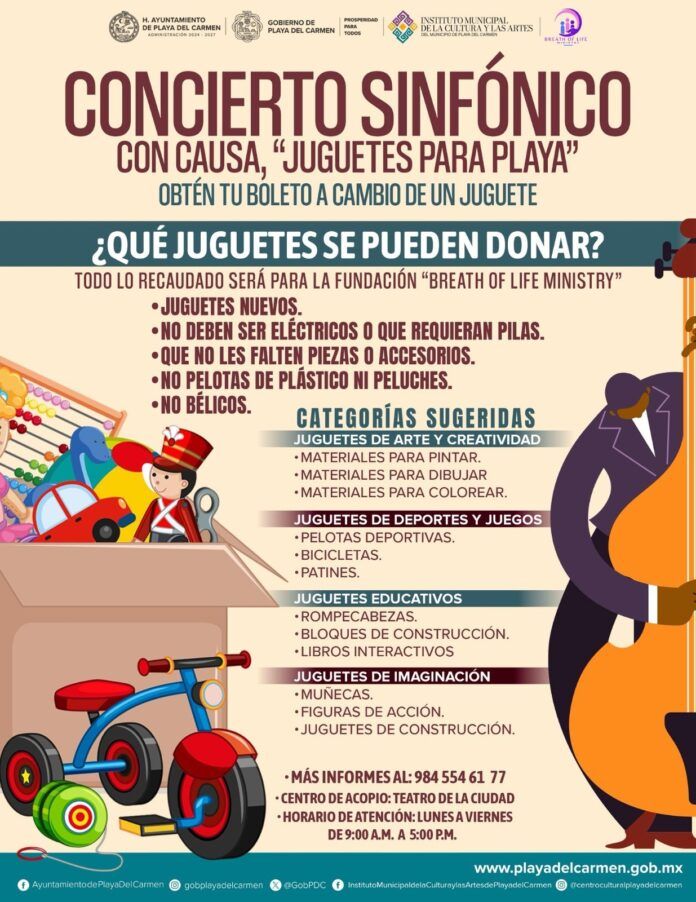 Anuncia Gobierno de Playa del Carmen concierto sinfónico con causa: “Juguetes para Playa”