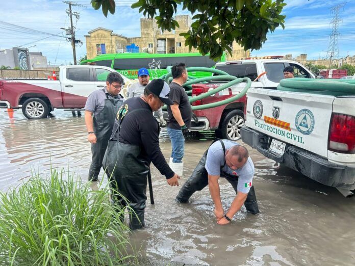 Desde tempranas horas, brigadas municipales se desplegaron en puntos críticos de la ciudad para realizar labores de desencharcamiento, limpieza de alcantarillas y desbloqueo de vialidades. Avenidas como Kabah, boulevard Kukulcán, Bonampak, Chac Mool y otras presentaron inundaciones severas, provocando retrasos y congestionamiento vehicular.