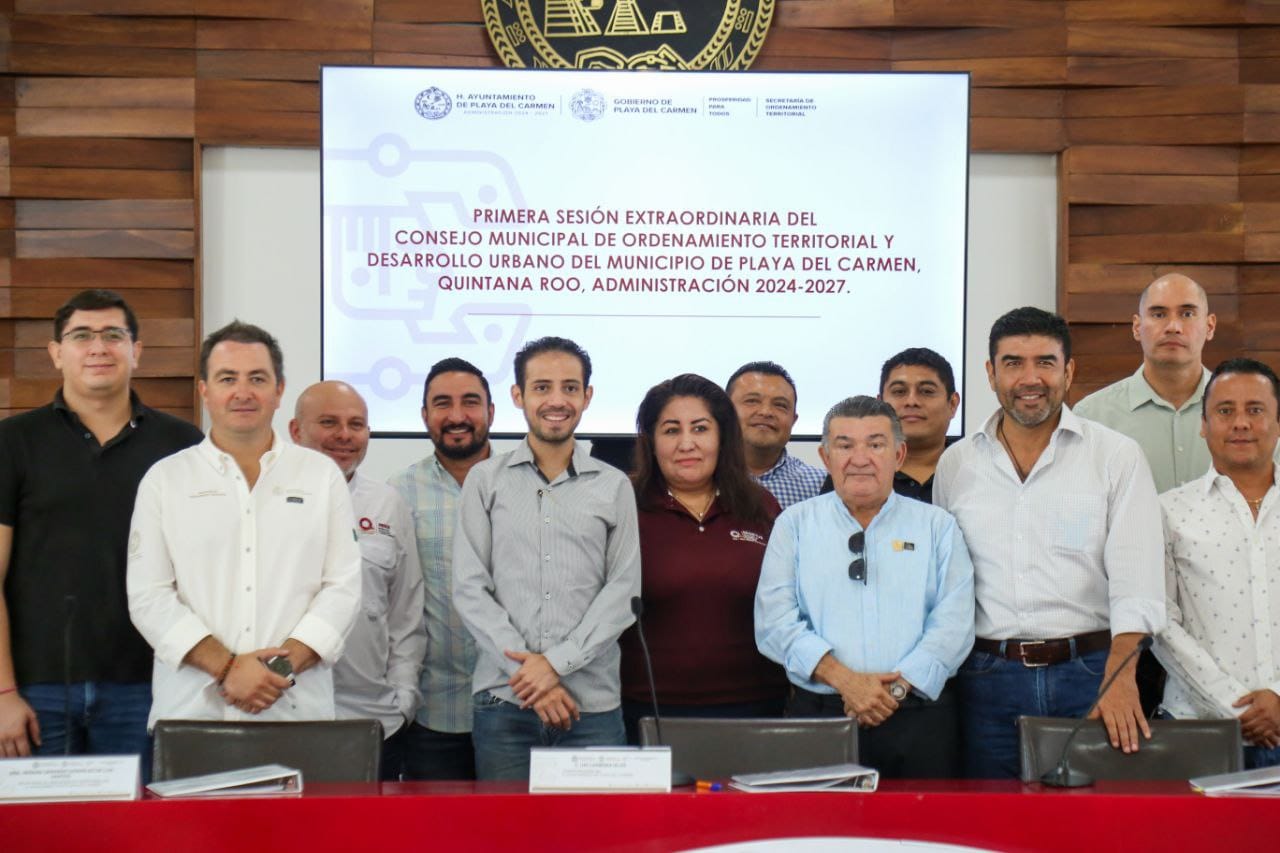 El gobierno municipal llevó a cabo la primera sesión extraordinaria del Consejo de Ordenamiento Territorial y Desarrollo Urbano, presidida por Uri Carmona Islas, cuarto regidor, en representación de la presidenta municipal y presidenta del Consejo Municipal de Ordenamiento Territorial y Desarrollo Urbano, Estefanía Mercado, a fin de dar seguimiento a los trabajos del programa de desarrollo urbano del centro de población de Playa del Carmen.