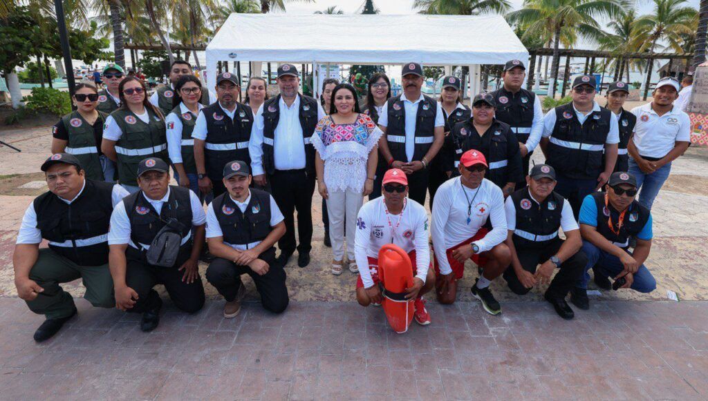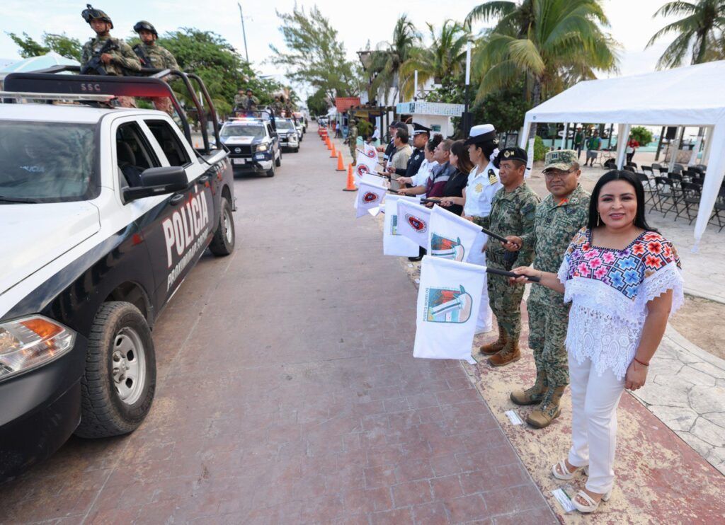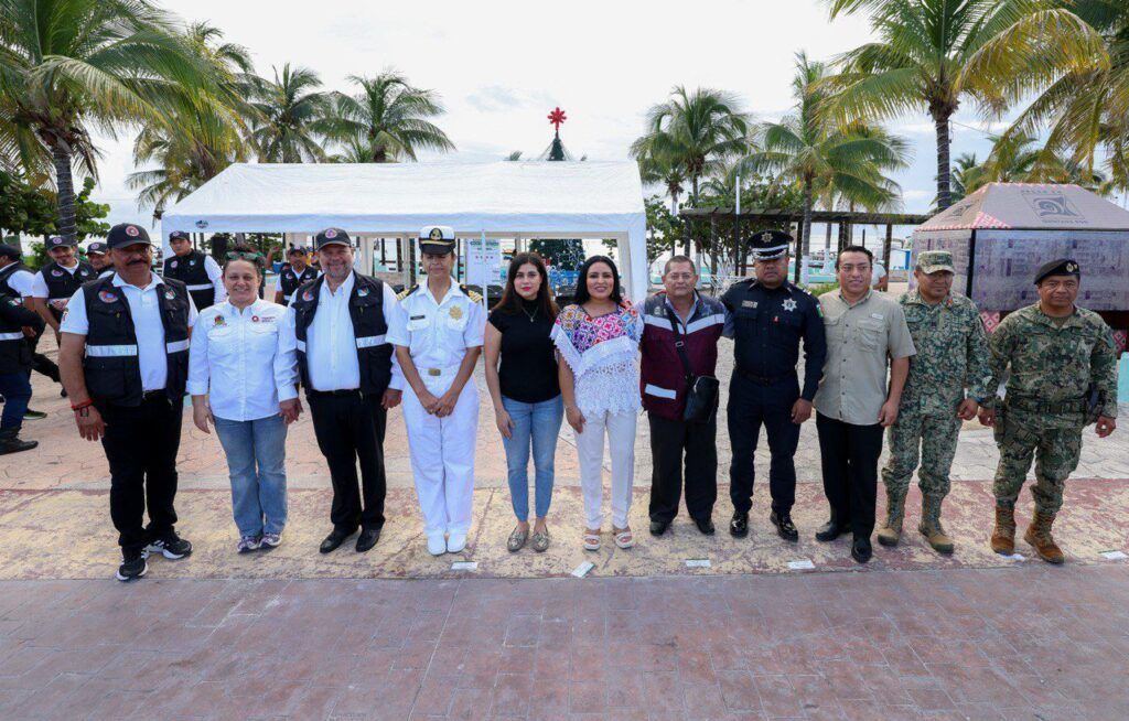 - Frente a la playa de la Ventana al Mar, la presidenta municipal dio salida a las corporaciones encargadas de brindar seguridad y atención a turistas y residentes durante esta temporada vacacional