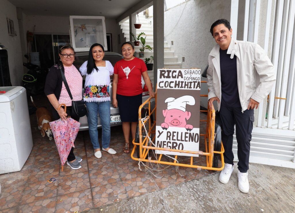 Asimismo, doña Alma Esther Xiu, dedicada a la venta de cochinita pibil, recibió un triciclo de carga para mejorar la movilidad y entrega de sus productos, impulsando así su emprendimiento local.
