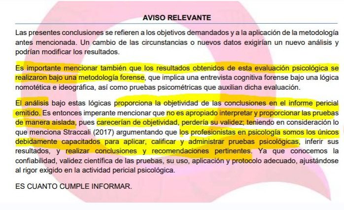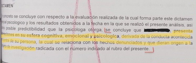 Asimismo, puso como evidencia un informe psicológico particular (donde se verifican conductas post traumáticas).