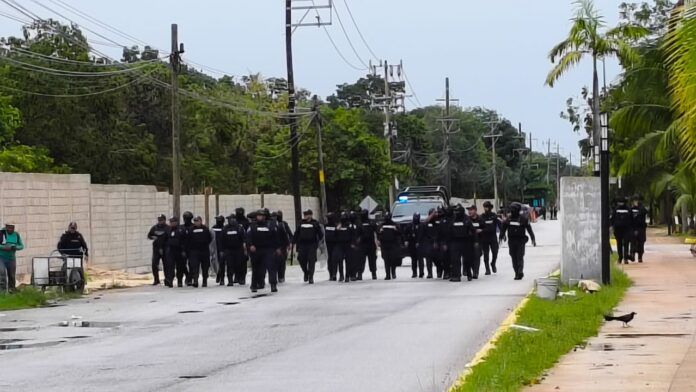 En Playa del Carmen, elementos de Seguridad Ciudadana municipales y estatales ejecutaron una orden de desalojo de terrenos ejidales, en la zona conocida como la “La Escondida”; detienen a 5 personas.