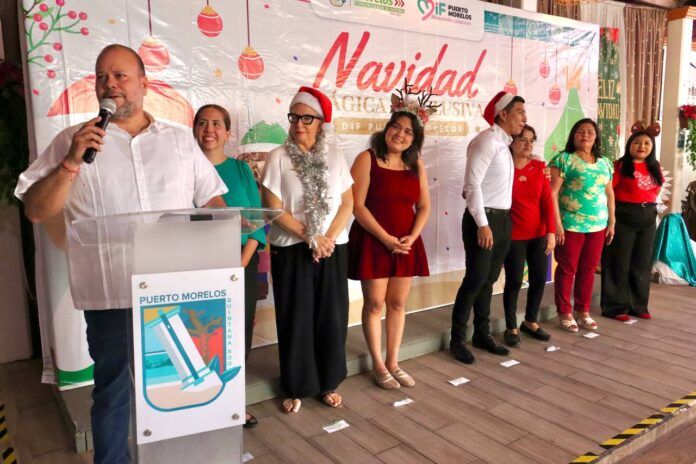 En un ambiente lleno de alegría, solidaridad y espíritu navideño, el Ayuntamiento de Puerto Morelos, a través del Sistema para el Desarrollo Integral de la Familia (DIF), llevó a cabo la Posada “Navidad Mágica e Inclusiva”, especialmente organizada para niñas y niños de la cabecera municipal con discapacidad, así como para las niñas y niños impulsores de la transformación.