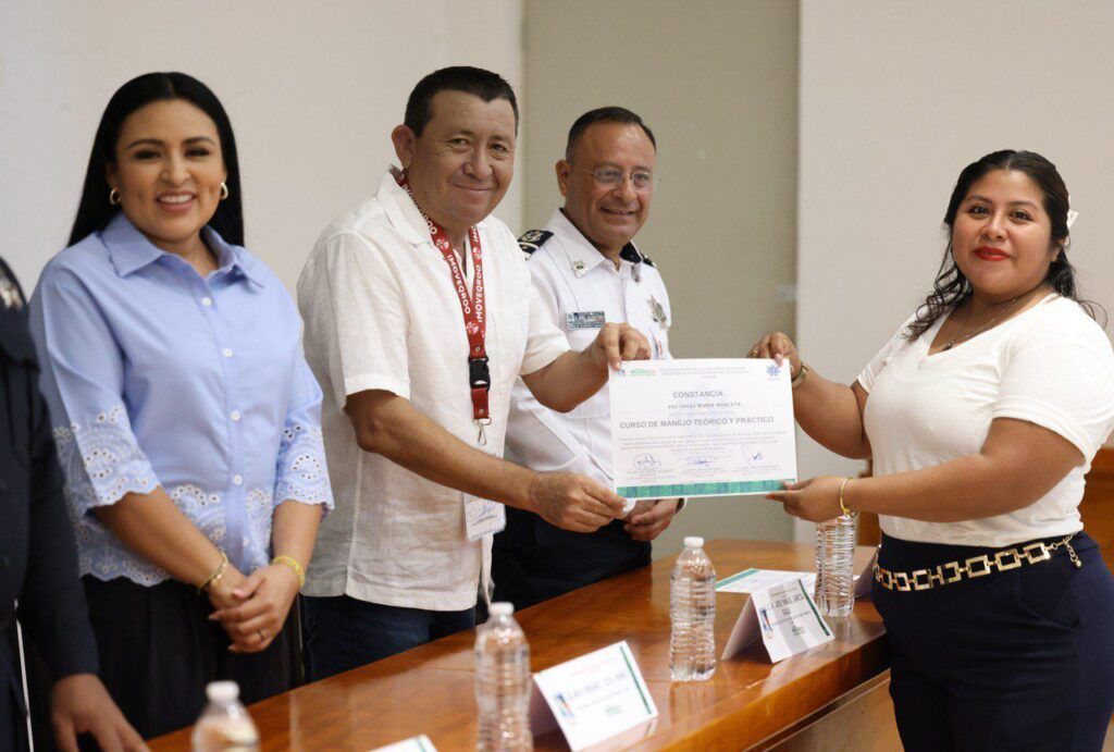 Durante la ceremonia, la alcaldesa entregó constancias que acreditan 50 horas de capacitación y que las y los participantes cuentan con las herramientas teóricas y prácticas necesarias para conducir con seguridad, facilitando además la obtención de su licencia de manejo.