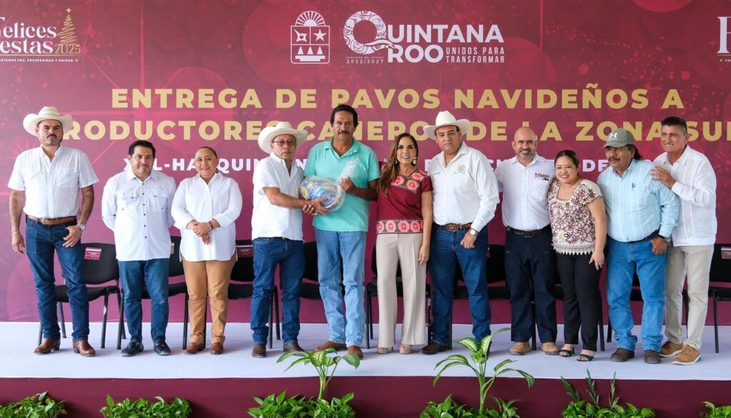 La gobernadora Mara Lezama Espinosa expresó su total respaldo a los cañeros del sur de Quintana Roo durante un evento de entrega de 3 mil 640 pavos a productoras y productores, en respuesta a una petición, una necesidad, para fortalecer a las familias en esta temporada navideña.