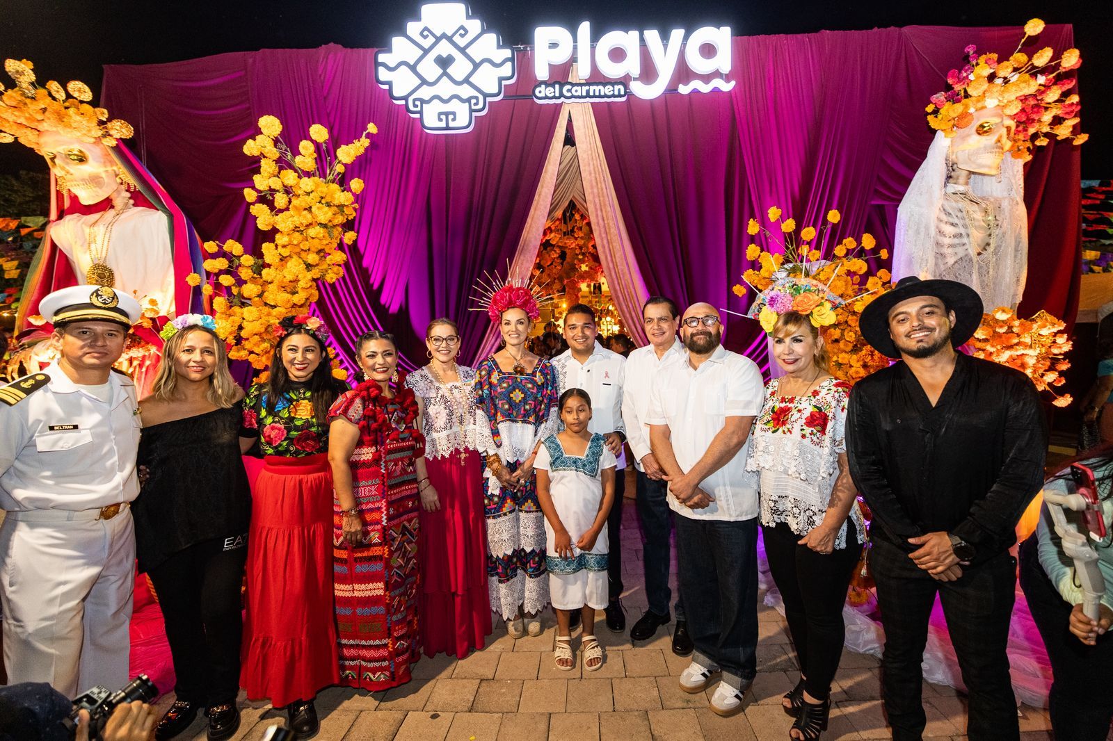 El presidente honorario del DIF Playa del Carmen, Eduardo Asencio; el director general del Instituto de la Cultura y las Artes, Ernesto Martínez Cuéllar, y la secretaria de Justicia Social y Participación Ciudadana, Deyanira Martínez, colocaron la ofrenda principal, con lo que dio inicio la celebración en memoria de los fieles difuntos. Las rezadoras y los voladores de Papantla formaron parte de la apertura del Janal Pixán.