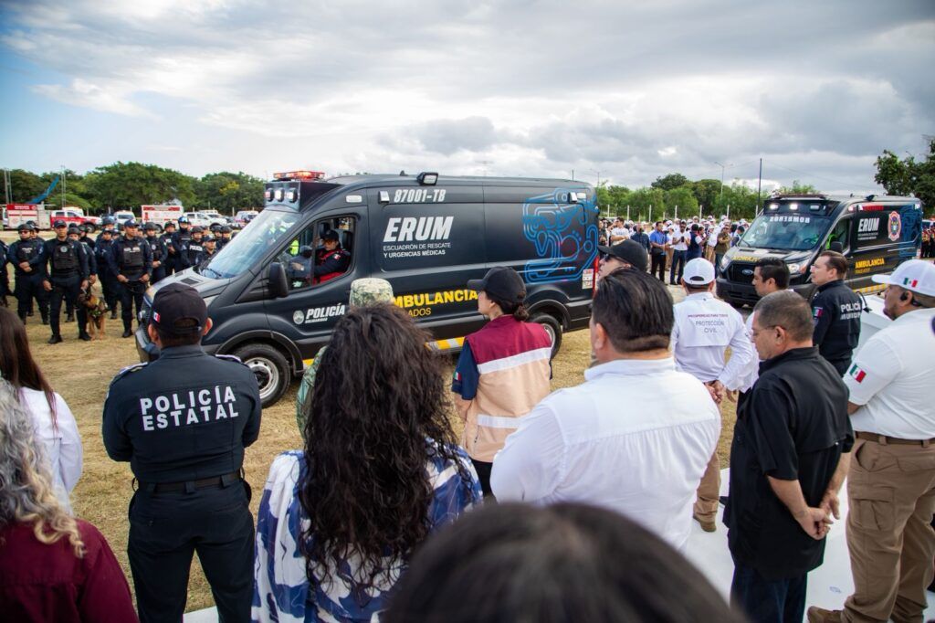 Durante el evento, que tuvo lugar en el Recinto Ferial de Playa del Carmen, reiteró que la seguridad es el eje central de su gobierno y llamó a las corporaciones a mantener el esfuerzo diario y no bajar la guardia.
