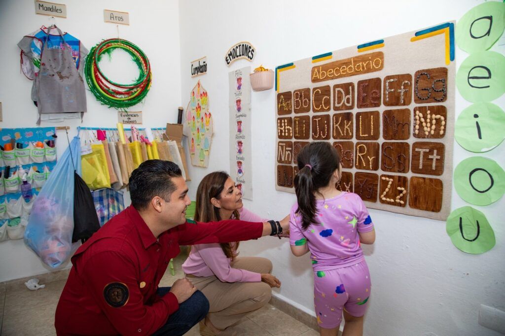 Durante su visita al edificio que alberga el Centro de Asistencia de Desarrollo Infantil (CADI) “Guadalupana”, donde asisten un promedio de 300 niñas y niños, la alcaldesa y la presidenta Honoraria del Sistema DIF Quintana Roo recorrieron las áreas de recepción, oficinas administrativas, salones de lactantes y maternal, plaza central, baños, aulas de preescolar, patio exterior, enfermería, comedor y cocina.