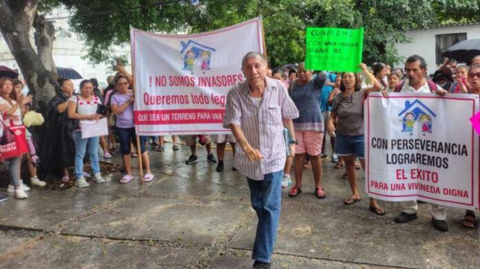 Los inconformes, quienes son asesorados por José Alonso Ayuso Borges, acudieron con cartulinas en mano con mensajes como “Cúmpleme con una vivienda digna, no queremos ser invasores”, “Queremos terrenos, no a la invasión” y “Con perseverancia lograremos el éxito para una vivienda digna”.