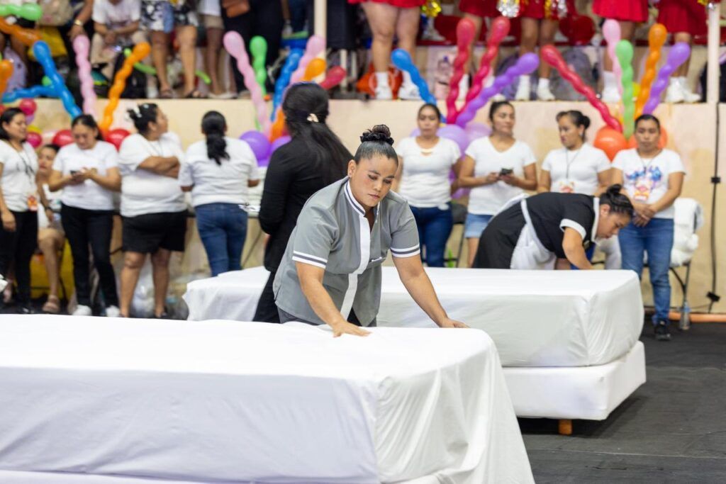 En una verdadera fiesta entre camaristas y camaristos de la Riviera Maya, para festejar su día, se convirtió el 12avo. concurso de tendido de camas 2025, organizado por la Confederación Revolucionaria de Obreros y Campesinos (CROC) en Quintana Roo en las instalaciones del Poliforum.