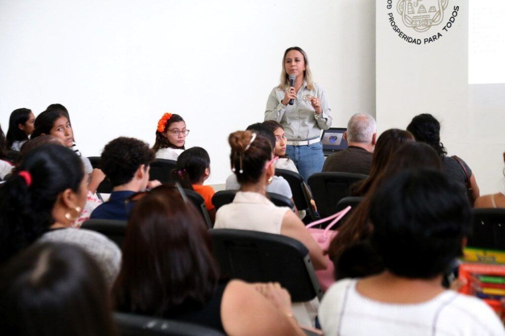 La secretaria Ejecutiva del SIPINNA Playa del Carmen, Yamile Domínguez Álvarez, quien impartió la plática, destacó la importancia de promover una cultura de respeto, participación y protección hacia la niñez y adolescencia.