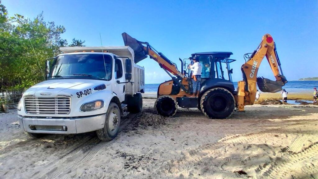 En atención a la contingencia ambiental generada por el recale masivo de sargazo en el litoral de Quintana Roo, y en respuesta al llamado de la gobernadora Mara Lezama, el gobierno que encabeza Estefanía Mercado reforzó las labores de limpieza de playas con el respaldo de la Secretaría de Marina Armada de México y de la Zona Federal Marítimo Terrestre (ZOFEMAT).