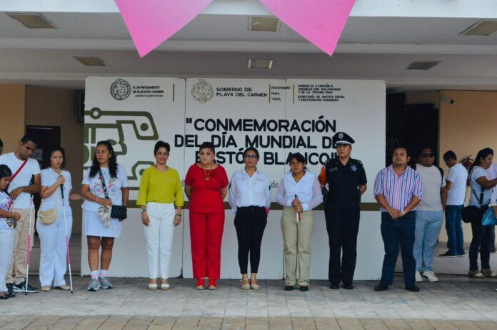 En un ambiente de empatía y respeto, el Ayuntamiento de Playa del Carmen, encabezado por la presidenta Estefanía Mercado, conmemoró el Día Internacional del Bastón Blanco con una jornada de inclusión y sensibilización realizada en la Plaza 28 de Julio.