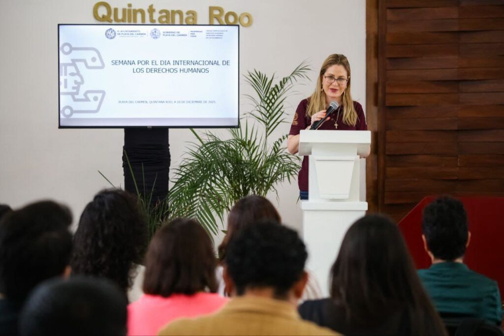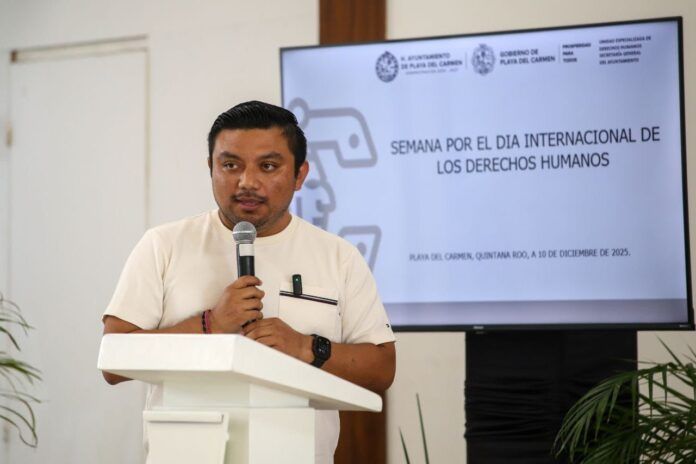“Los derechos humanos no son para celebrar, son para ejercer, garantizar y proteger”, afirmó el secretario general del Ayuntamiento, Luis Herrera Quiam, al inaugurar la Semana por el Día Internacional de los Derechos Humanos, en representación de la presidenta municipal Estefanía Mercado.