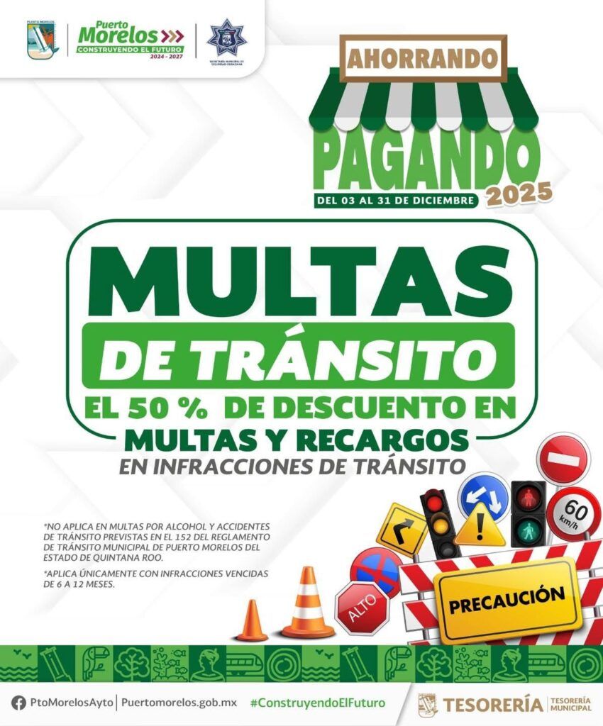 En constancias de residencia y de vecindad aplicará descuento de 50 por ciento, de igual forma para multas y recargo de infracciones de Tránsito vencidas de 6 meses hasta 3 años, excepto en multas por alcohol y accidentes de tránsito.