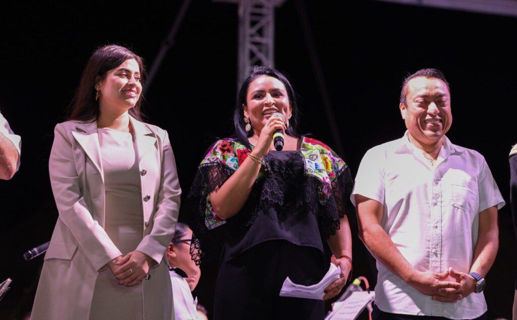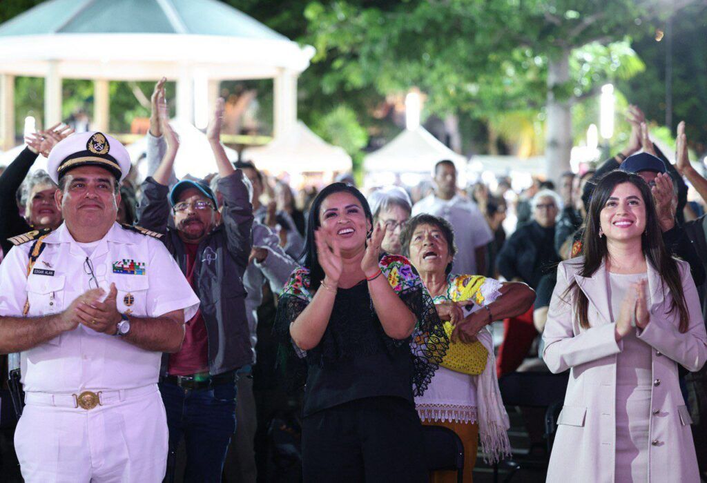 En la velada la alcaldesa estuvo acompañada por José de Jesús Espinosa Payán, secretario del Ayuntamiento; Karen Alejandra Román Flores, secretaria Técnica Regional para la Construcción de la Paz; regidor Gonzalo Calderón Poot y Adriana Nava Gómez, directora de la Cultura y las Artes.