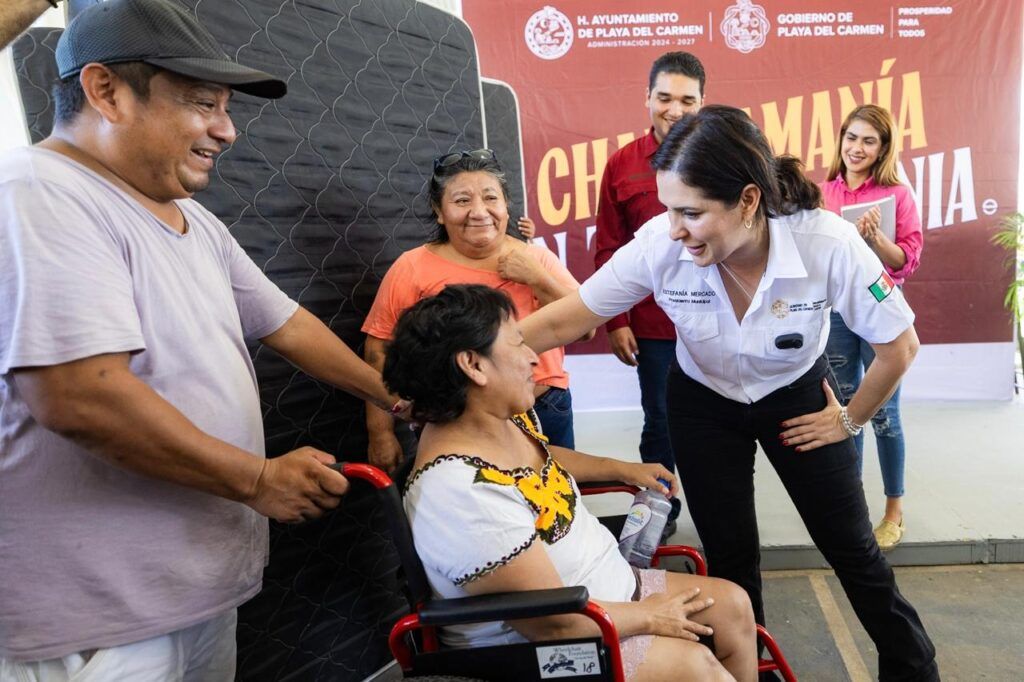 Durante el recorrido, la presidenta municipal entregó apoyos alimentarios del programa “Playa Llena, Corazón Contento”, coordinado por la Secretaría de Justicia Social y Participación Ciudadana, sin acto protocolario y con acceso abierto al público. También, entregó colchones donados por el Tren Maya a familias que más lo necesitan.