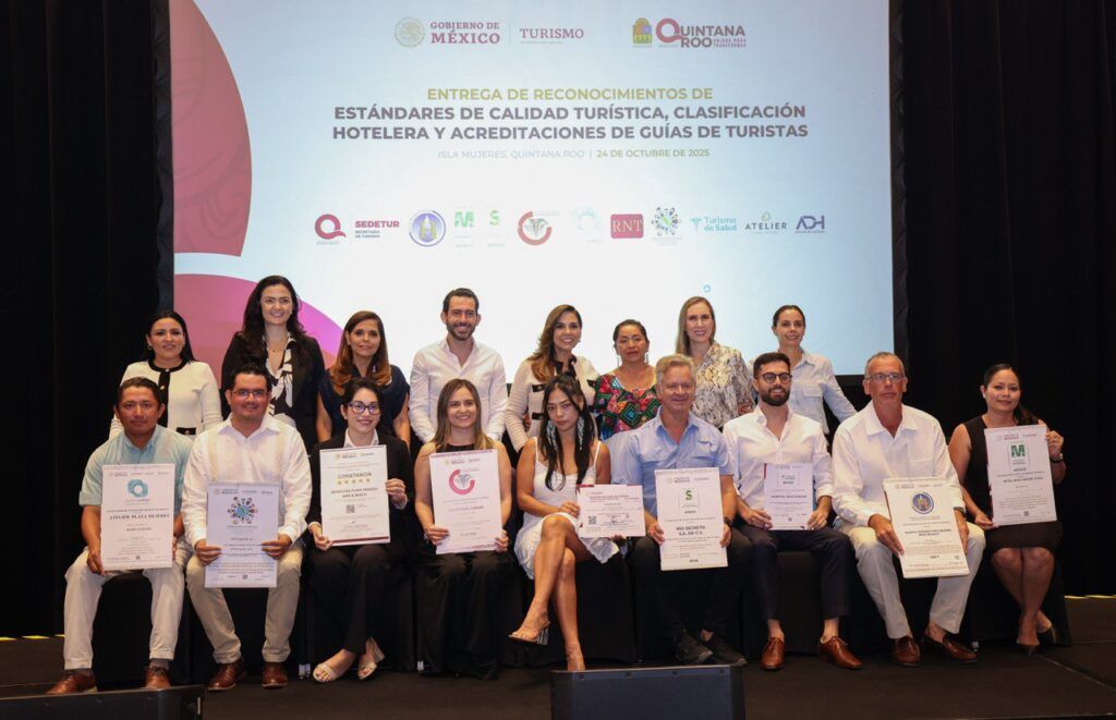 “Es un orgullo contar con trabajadores y trabajadoras que hacen los destinos turísticos de Quintana Roo únicos por el trato cálido y humano”, afirmó la presidenta municipal Blanca Merari Tziu Muñoz en el marco de la entrega de Reconocimientos en Estándares de Calidad Turística, Clasificación Hotelera y Acreditaciones de Guías de Turistas.