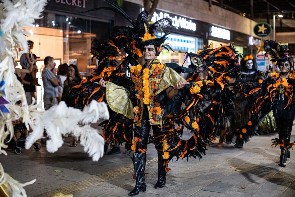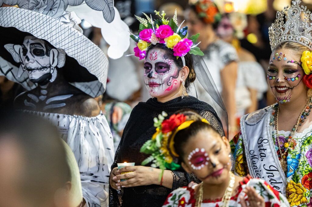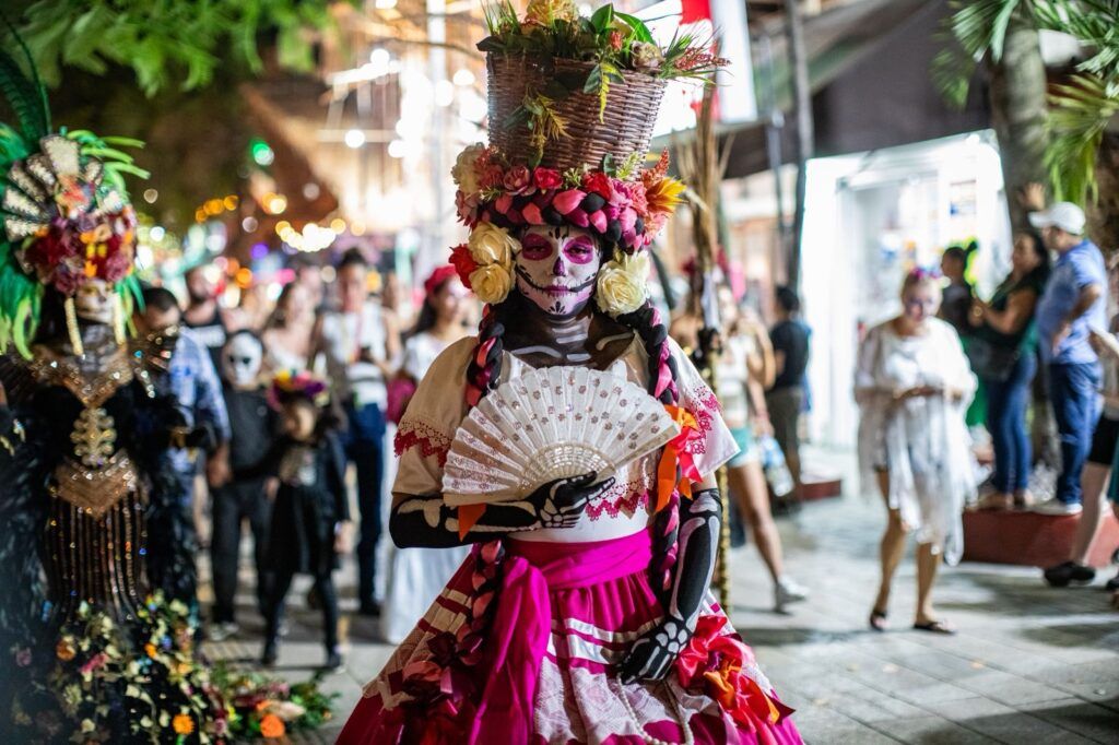 Miles de habitantes de Playa del Carmen y turistas disfrutaron de este colorido evento, que inició en la avenida Constituyentes y concluyó en la Plaza 28 de Julio y donde estuvieron presentes elegantes catrinas y catrines.
