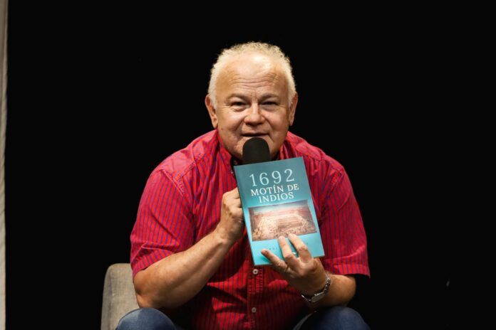 Más adelante, presentó su novela “El motín de los indios”, basada en un hecho histórico ocurrido en 1692 con la quema del Palacio Nacional en la actual Ciudad de México. “La escribí en un mes y tardé ocho meses en corregirla. Es la historia de Hortencia, Dorotea y Samuel. Está a la venta en Amazon”, añadió.
