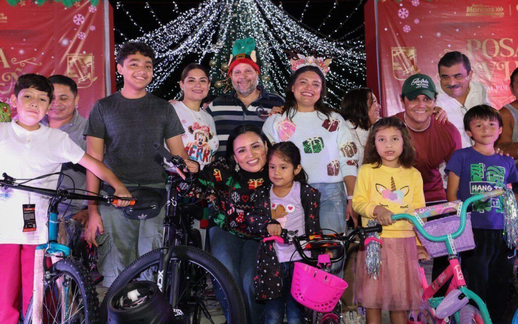 Niñas, niños y familias llenan el parque principal en la Posada Navideña Puerto Morelos 2025