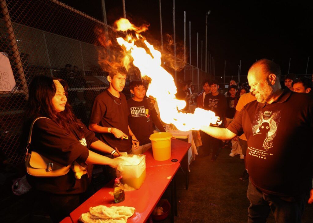 Entre las actividades destacaron Arduino y la carrera de carritos, fuego en las manos, modelos innovadores de robótica, un acelerador de partículas y un programa artístico que animó la noche.
