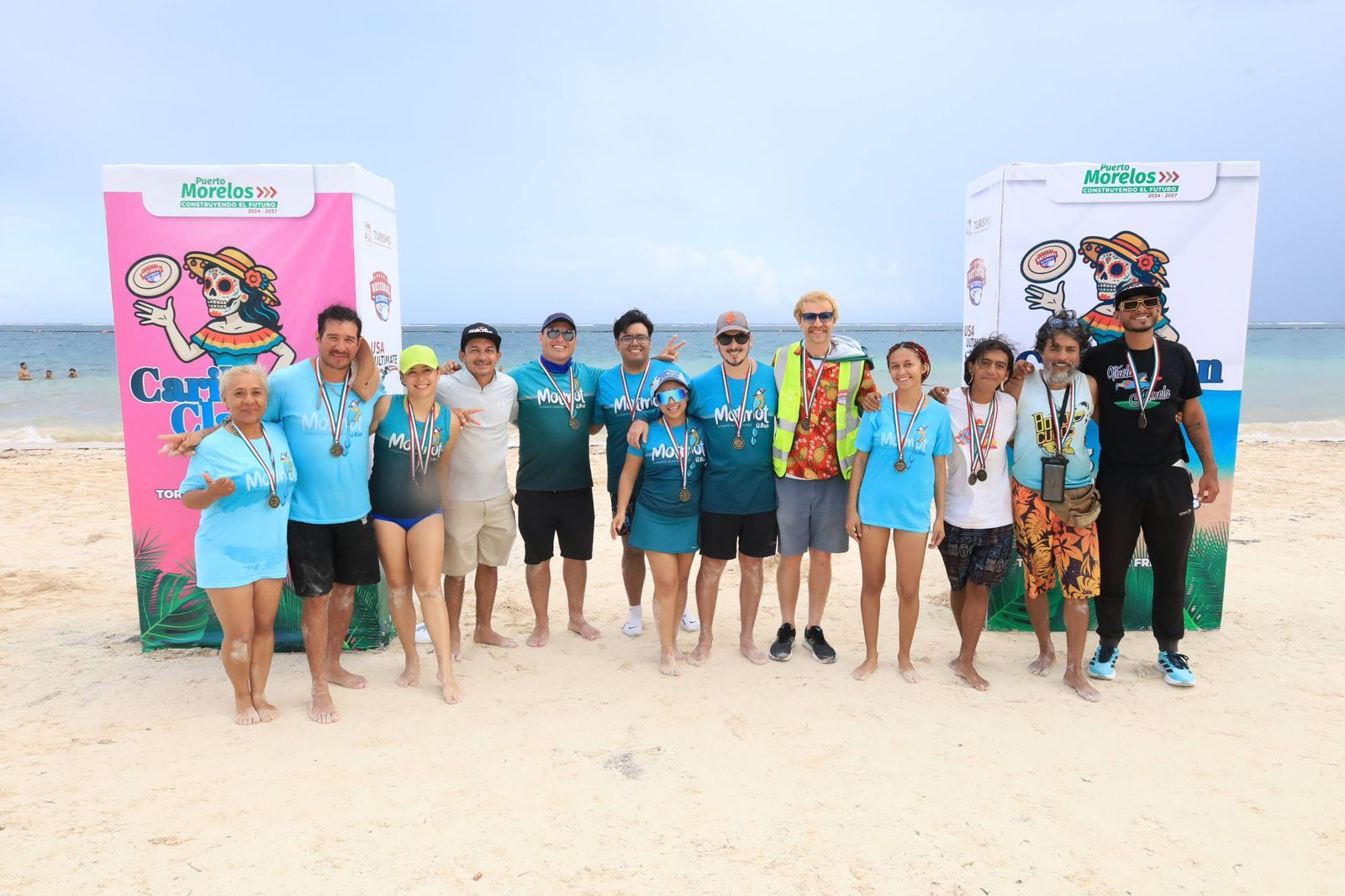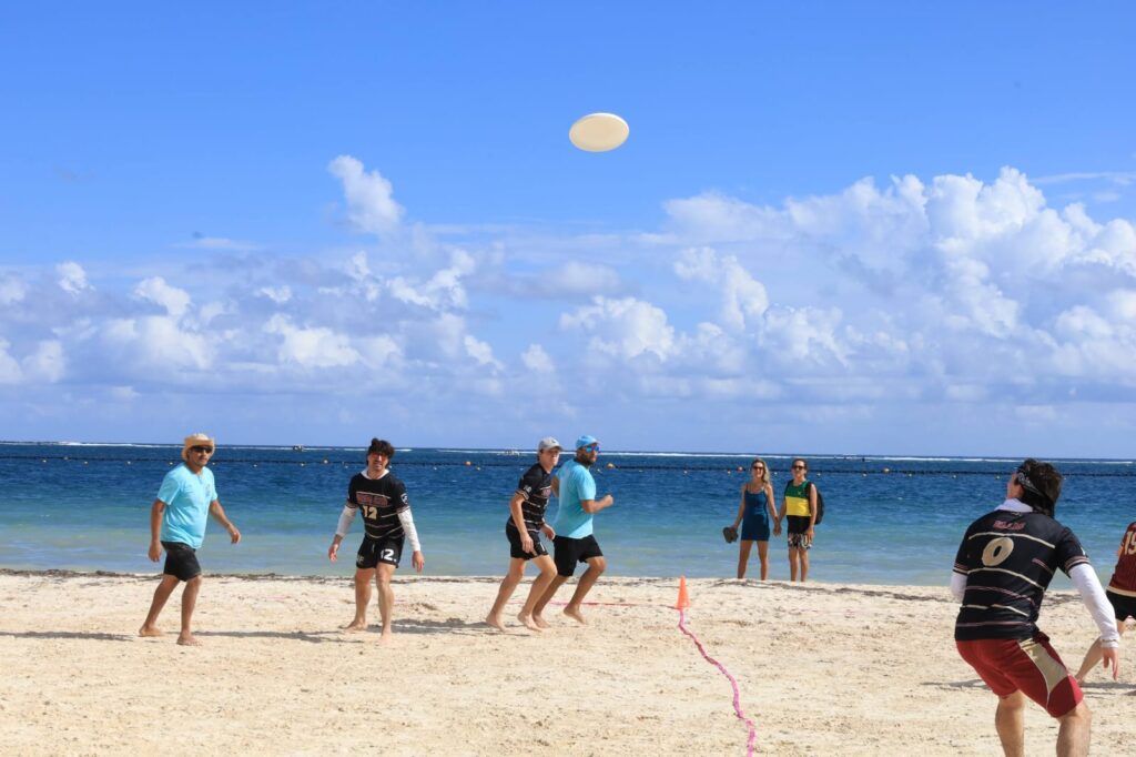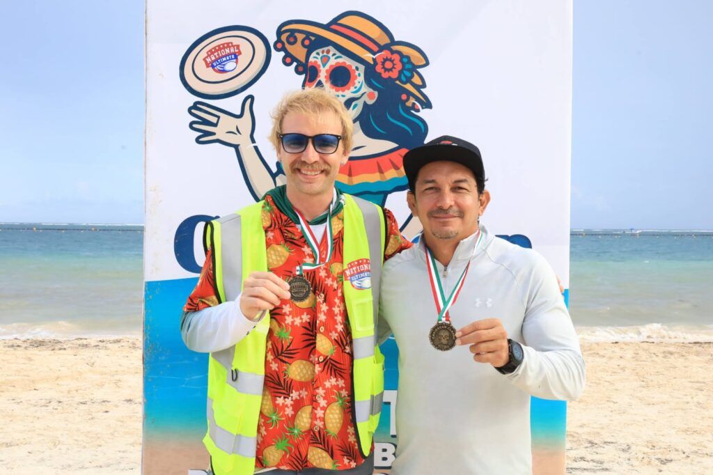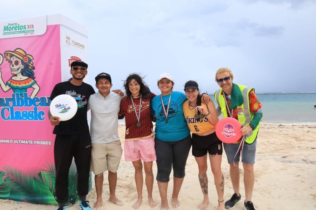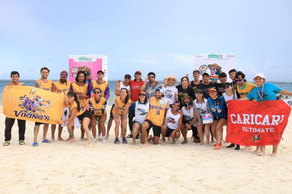 “Se vivió una auténtica fiesta en Playa Sol, donde se habilitaron cuatro canchas. Los 28 partidos de frisbee que se realizaron, incluyendo la final, atrajeron gran cantidad de público los dos días del torneo”, afirmó Raúl Guadarrama García, secretario de Turismo Sustentable de Puerto Morelos, en representación de la presidenta municipal Blanca Merari Tziu Muñoz.