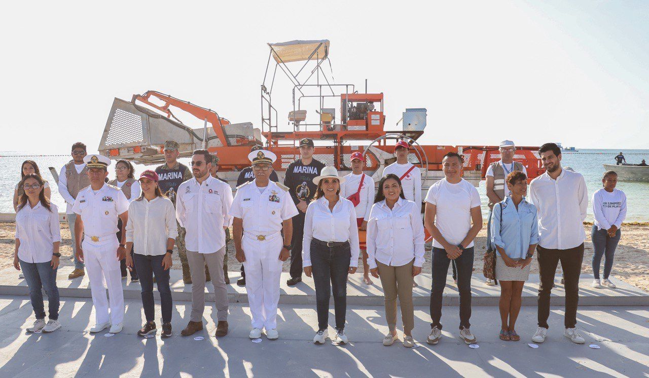 Antes de marcar el inicio de la limpieza de playas, la gobernadora Mara Lezama hizo un nuevo exhorto para mantenerlas libres de sargazo.