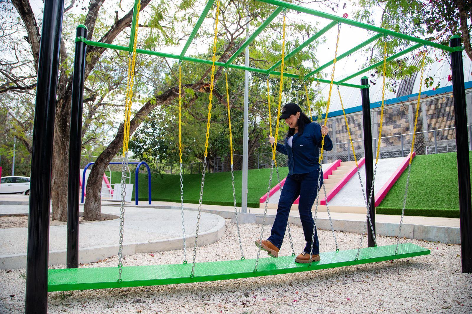 Esta intervención convierte al parque en un espacio totalmente accesible, incluyente y funcional, pensado para niñas, niños, personas con discapacidad, jóvenes y abuelitos.