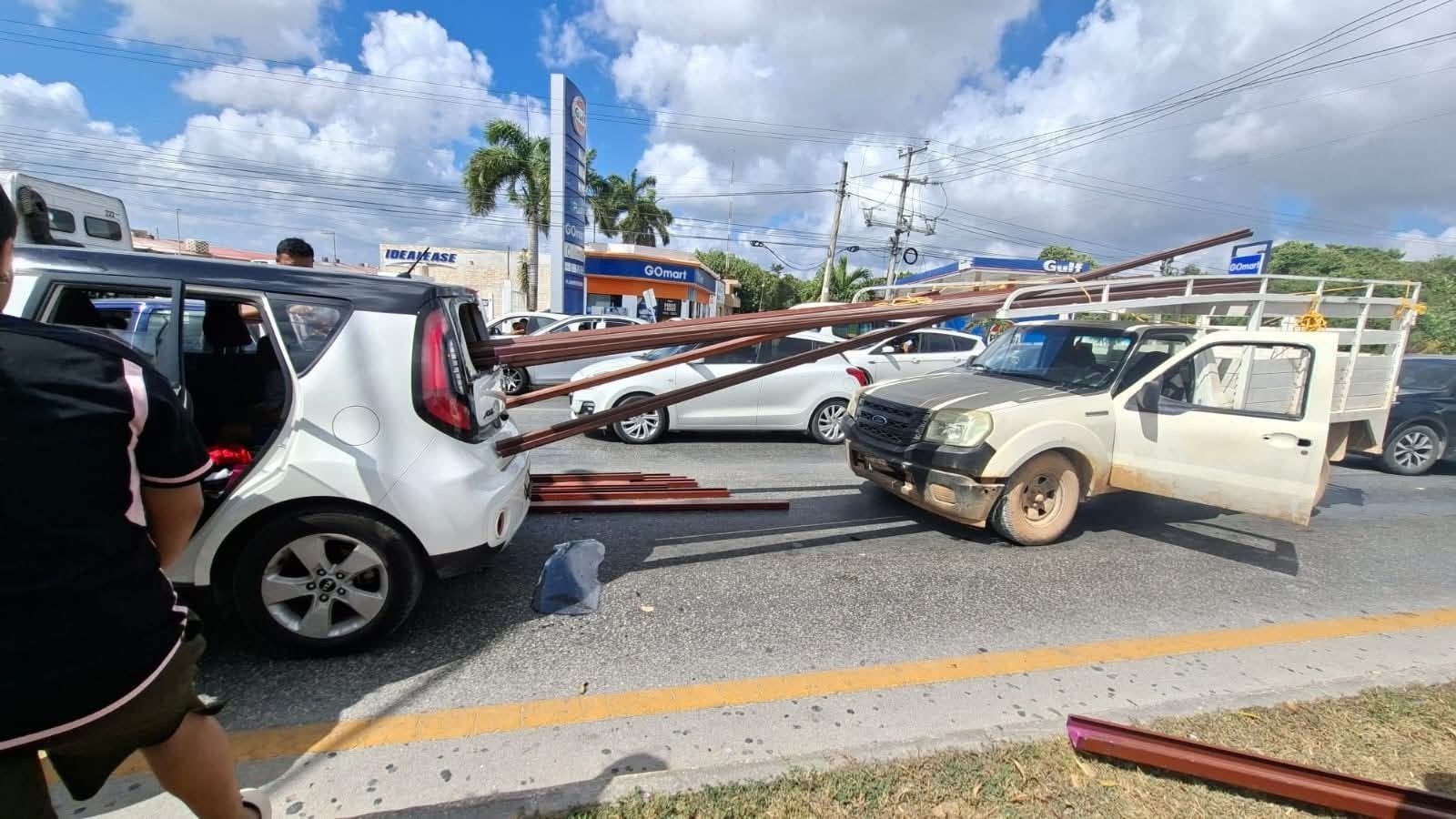 Un aparatoso accidente registrado la tarde de este jueves en el cruce de la avenida José López Portillo con Nichupté generó movilización de cuerpos de emergencia y reavivó la preocupación sobre el traslado seguro de materiales en la ciudad.