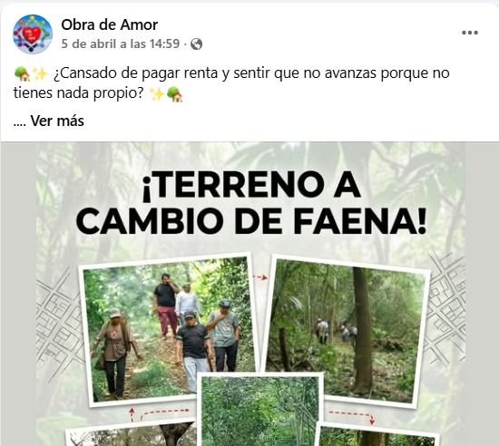 Añadió que esta página que se está utilizando es presuntamente una comunidad religiosa, pero desconocen completamente a la persona que está realizando esta práctica que es imposible, porque para limpiar un terreno se necesitan ciertos permisos.