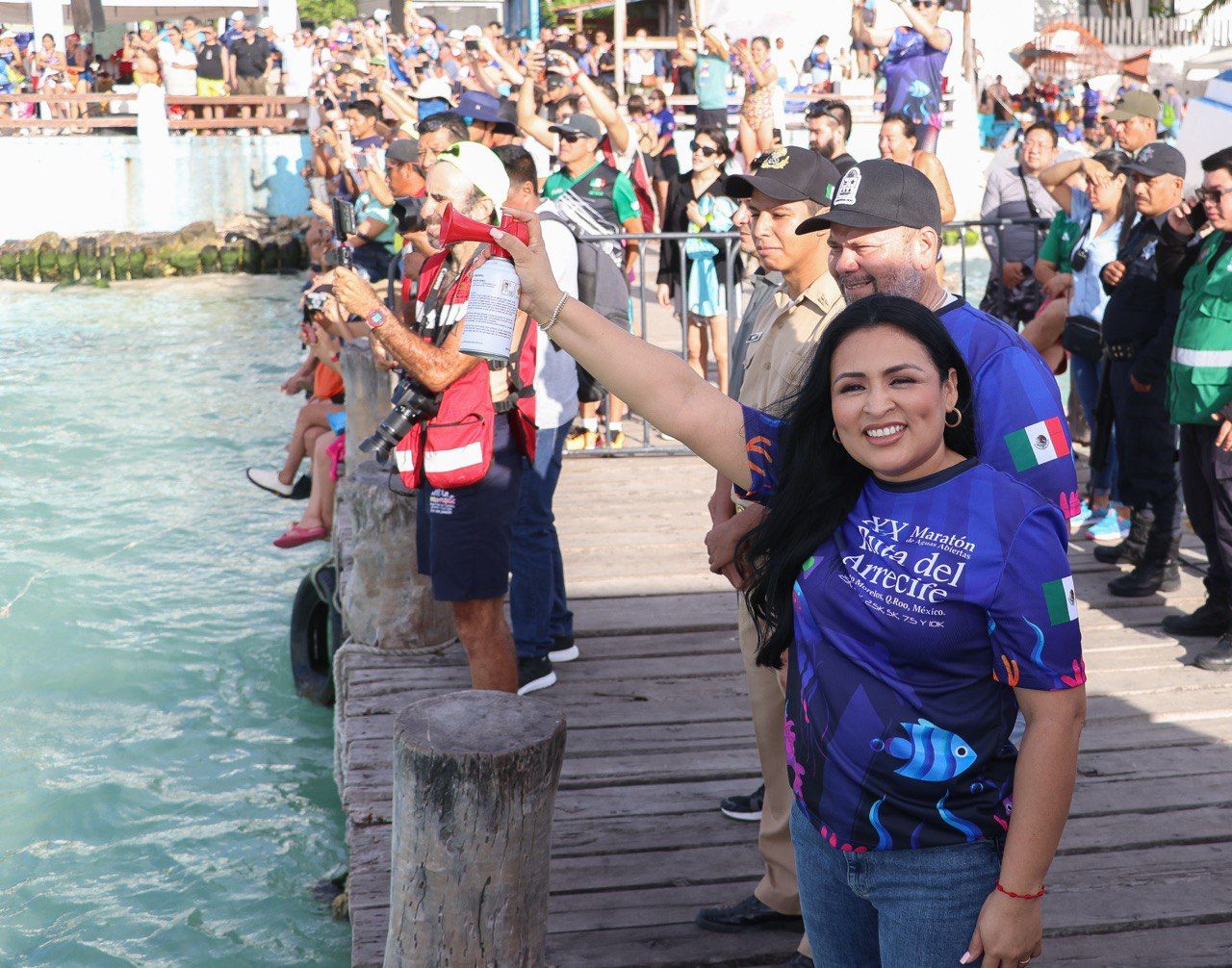 La presidenta municipal Blanca Merari Tziu Muñoz anunció la realización de la XXI edición del Maratón de Aguas Abiertas “La Ruta del Arrecife”, uno de los eventos deportivos más importantes del municipio, que se llevará a cabo los días 21 y 22 de febrero en la playa Ventana al Mar, en Puerto Morelos.