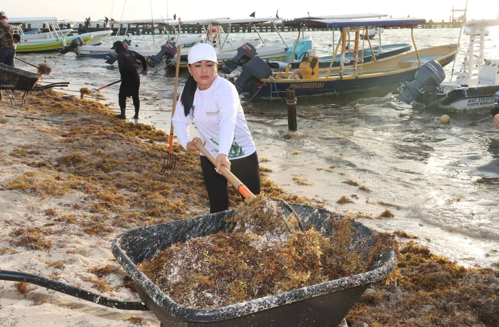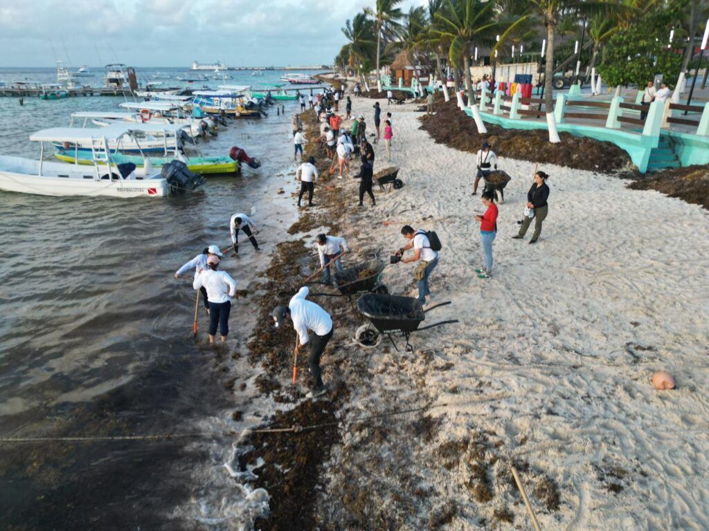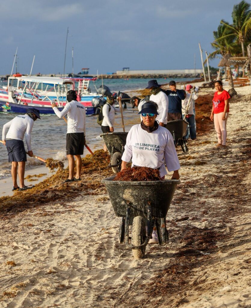 Para mantener las playas limpias y en óptimas condiciones para residentes y visitantes, la presidenta municipal Blanca Merari Tziu Muñoz puso en marcha la jornada de limpieza ante el arribo de sargazo en las costas de Puerto Morelos.