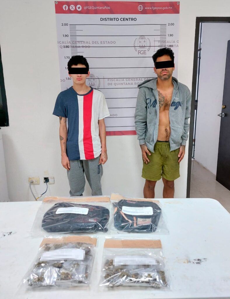 Posteriormente, durante actos de investigación previos a la ejecución de otro mandamiento judicial, en la misma colonia, elementos de la Policía de Investigación detuvieron en flagrancia a Brandon Daniel “N” y Ryan Jeremy “N”, a quienes se le localizaron vegetal verde seco parecido a la marihuana, por lo que fueron puestos a disposición del Ministerio Público.