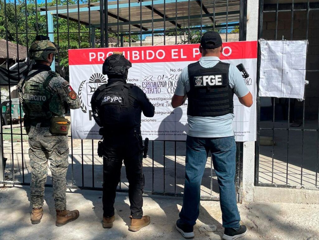 La Fiscalía General del Estado, en coordinación con elementos del Grupo Interinstitucional, cumplimentó, por separado, cinco órdenes de cateo, otorgadas por jueces de control, donde aseguró sustancias similares a drogas, así como la detención de siete personas por su probable participación en hechos posiblemente constitutivos de delitos contra la salud en su modalidad de narcomenudeo en este municipio, Cozumel, Tulum y Benito Juárez.