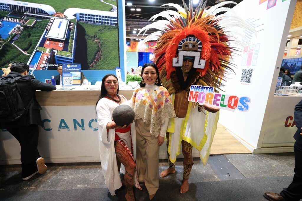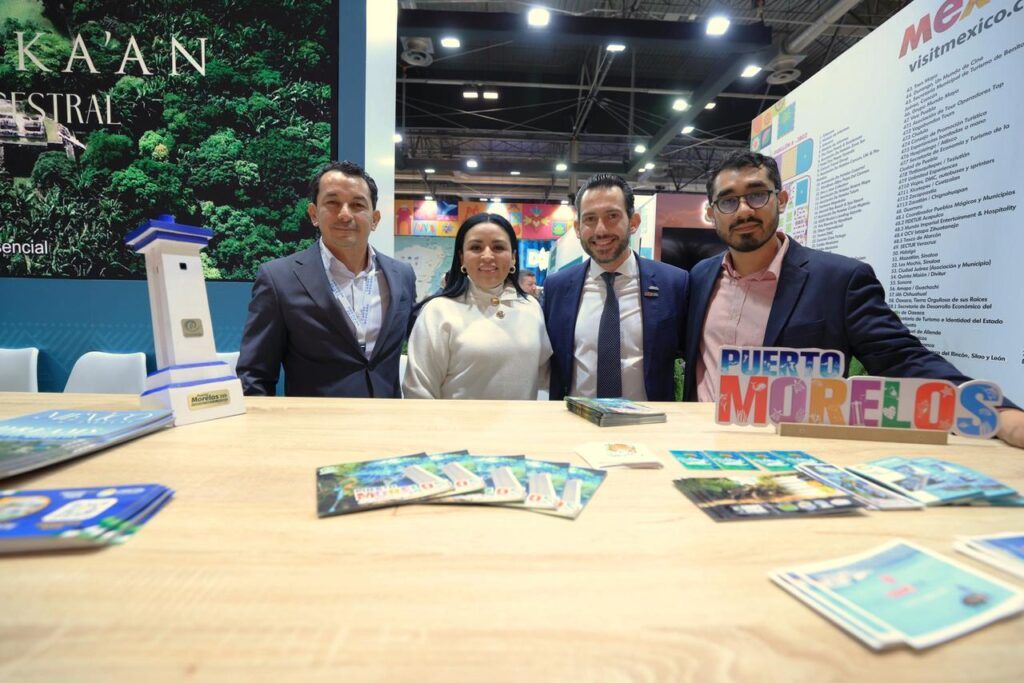 La delegación de Puerto Morelos ha brindado atención a profesionales del sector turístico y a representantes de medios de comunicación, encabezada por la presidenta municipal Blanca Merari Tziu Muñoz y el secretario de Turismo Sustentable, Raúl Guadarrama García, quienes estuvieron acompañados de representantes mayas quienes daban un cálido recibimiento a interesados en el destino.