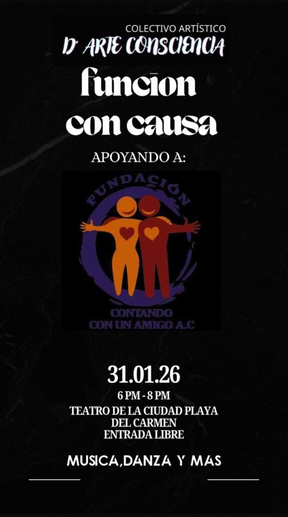 Para apoyar a los sectores vulnerables de Playa del Carmen, D’Arte Conciencia ofrecerá una función totalmente gratuita en el Teatro de la Ciudad, el próximo sábado 31 de enero a partir de las 18:00 horas.