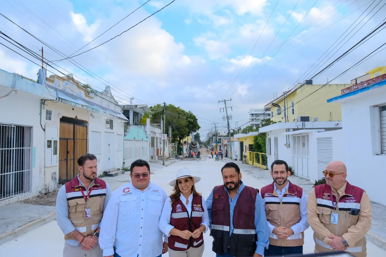 Junto con el presidente municipal José Luis Chacón Méndez, la gobernadora Mara Lezama Espinosa recorrió las obras de rehabilitación con concreto hidráulico de las principales calles turísticas del centro de Cozumel, que se realiza a través del Fideicomiso para el Bienestar del Turismo Crucerista (FIBETUC)