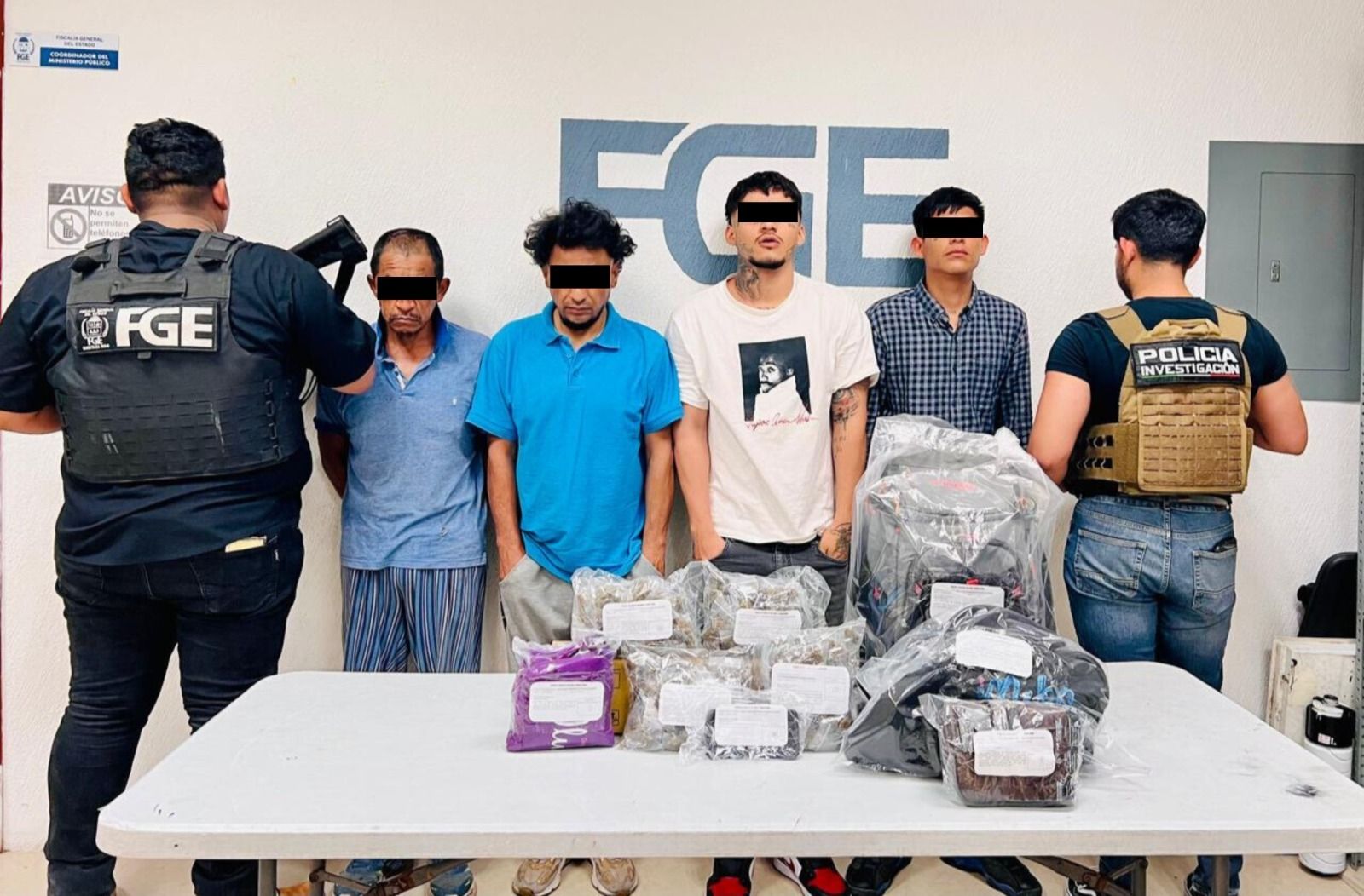 La Fiscalía General del Estado informó que elementos de la Policía de Investigación detuvieron a siete personas del sexo masculino, por su probable relación en hechos posiblemente constitutivos de delitos contra la salud en su modalidad de narcomenudeo, en este municipio.
