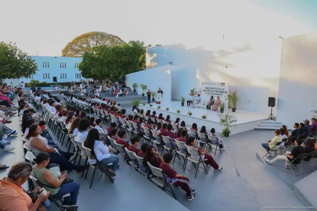 En un acto realizado en el anfiteatro del DIF Playa del Carmen, 150 niñas, niños y adolescentes provenientes de diversas instituciones educativas rindieron protesta como Impulsores de la Transformación 2026: “La voz que representa”.