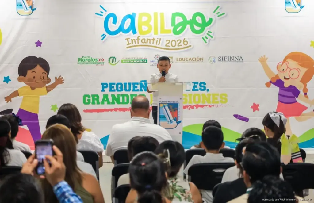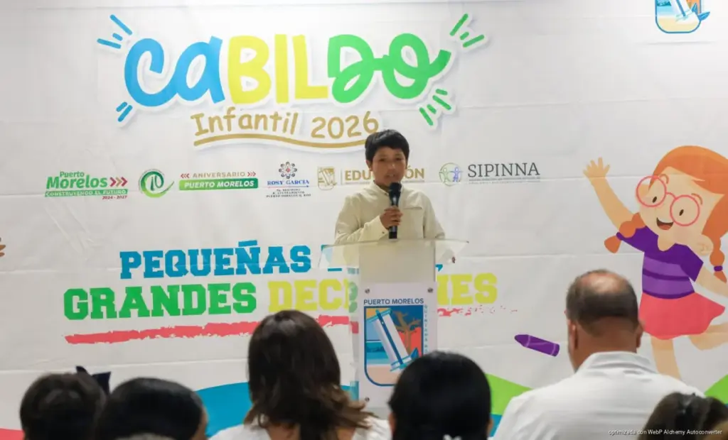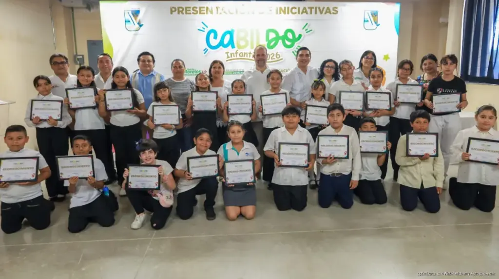 Para fortalecer la participación cívica desde la niñez, se llevó a cabo la elección del Cabildo Infantil 2026 bajo el lema “Pequeñas voces, grandes decisiones”, organizada por la Novena Regiduría, en la que estudiantes de cuarto a sexto grado de primaria expusieron propuestas enfocadas en el bienestar social, el impulso a la educación, el deporte, la cultura, el rescate de la cultura originaria maya, la conservación del medio ambiente y la protección animal, entre otros temas.