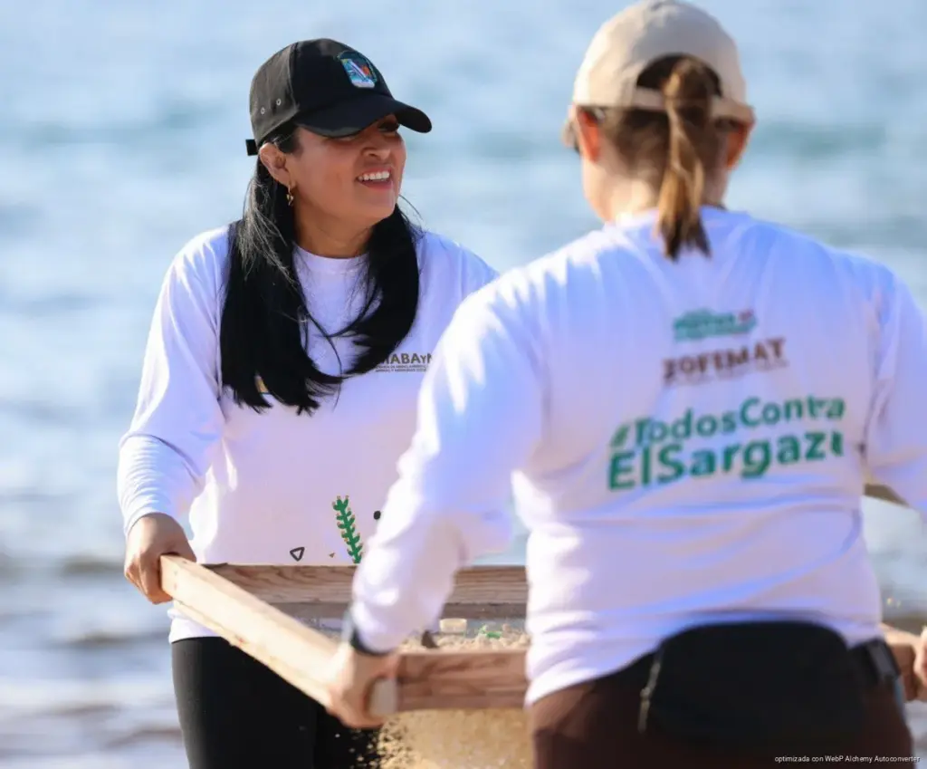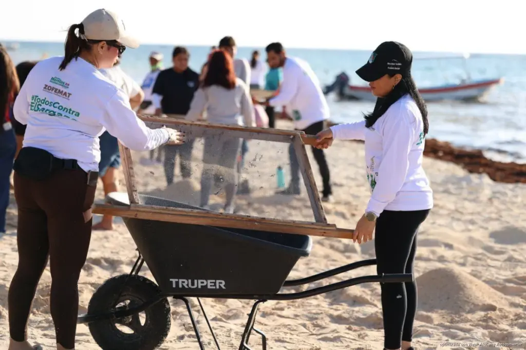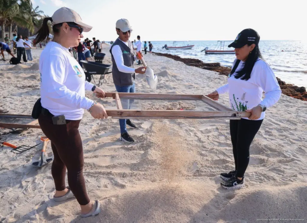 Durante las labores, la secretaria de Medio Ambiente, Aimee Rodríguez Vivas, informó que se realizaron acciones de recolección de sargazo y cribado de arena para retirar microplásticos, contribuyendo a la protección de los ecosistemas costeros.