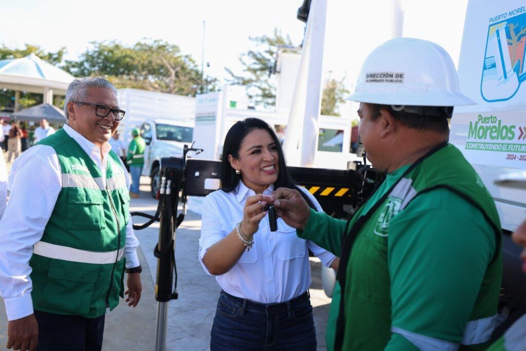 La presidenta municipal hizo entrega de las llaves a los colaboradores que se harán cargo de las unidades y constató el funcionamiento de la grúa, acompañada de Javier Hernández Santillán, miembro del Fideicomiso y presidente del Colegio Portomorelense de Ingenieros Civiles; del secretario general del Ayuntamiento, José de Jesús Espinosa Payán; el regidor Antonio Chuc Pech; así como ciudadanas y ciudadanos.