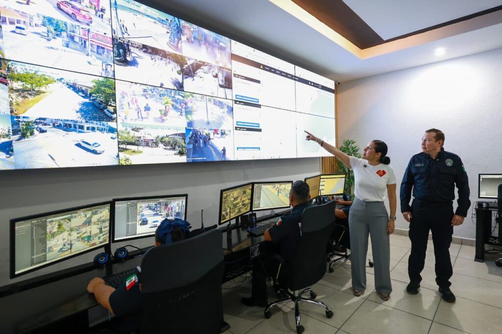 La presidenta municipal Estefanía Mercado, acompañada por el secretario de Seguridad Ciudadana Municipal (SSCM), Carlos Montesinos, realizó una visita al Centro de Control, Comando, Comunicación y Cómputo (C4), donde supervisó el funcionamiento del innovador sistema de vigilancia policial a través de cámaras corporales (bodycams).